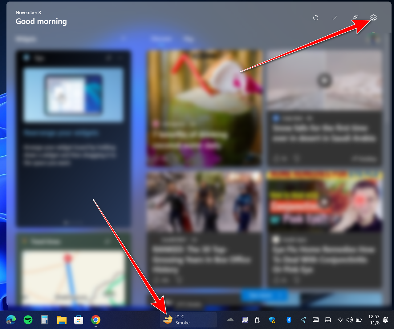 - Hover over the widget menu on your taskbar and click on Settings (gear icon) positioned at the top right corner.