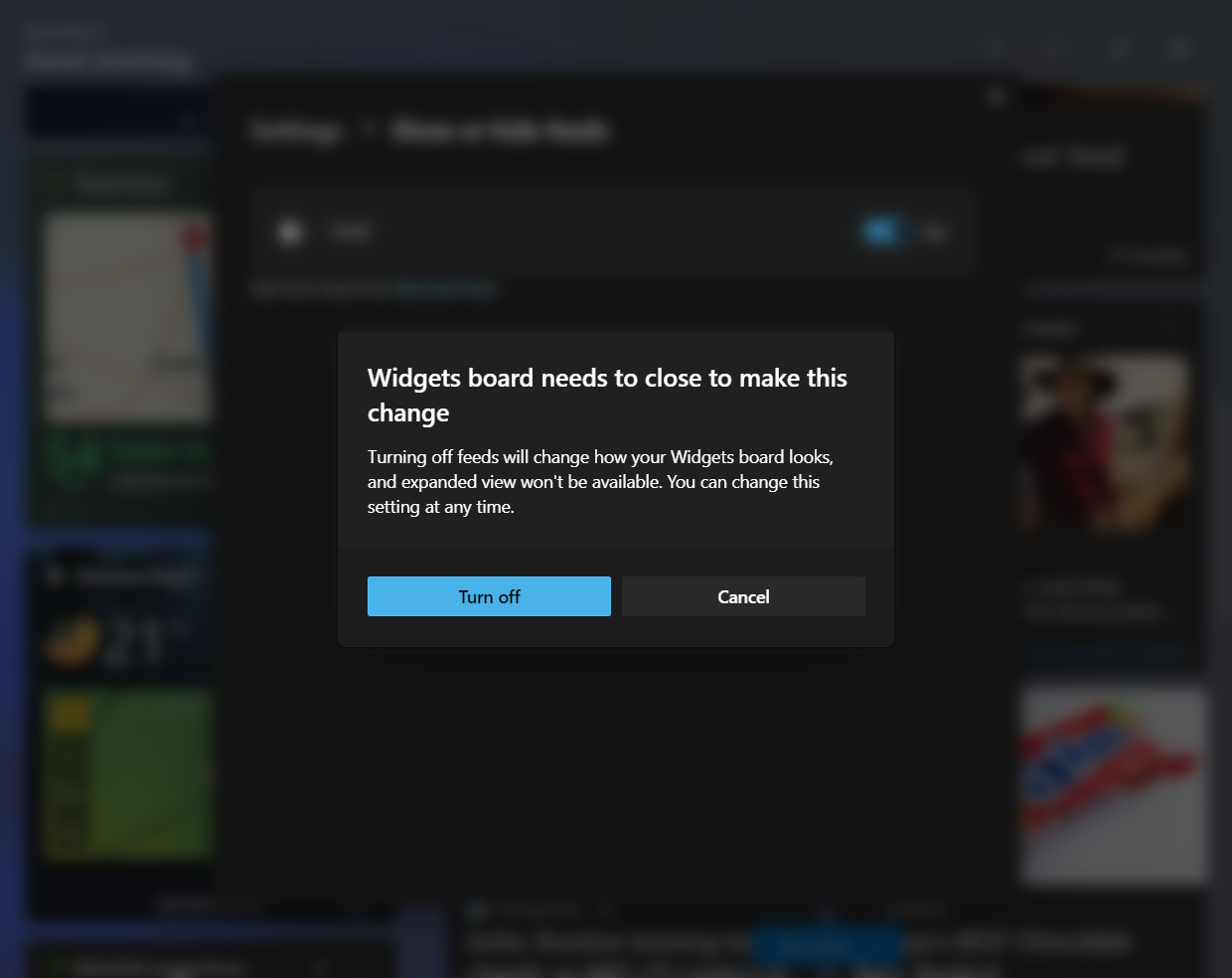 - Lastly, click on Turn off to disable News and Interests.