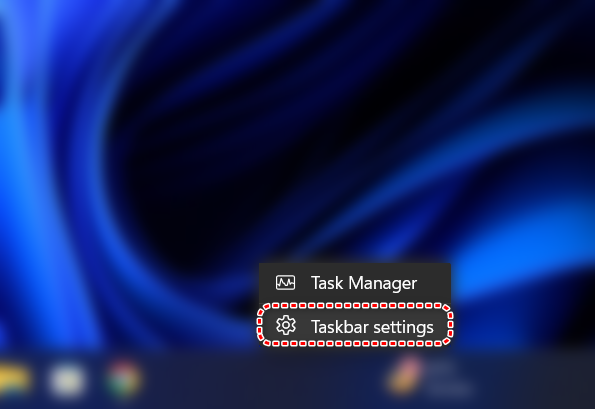 - Right-click on the widget menu and select Taskbar settings.