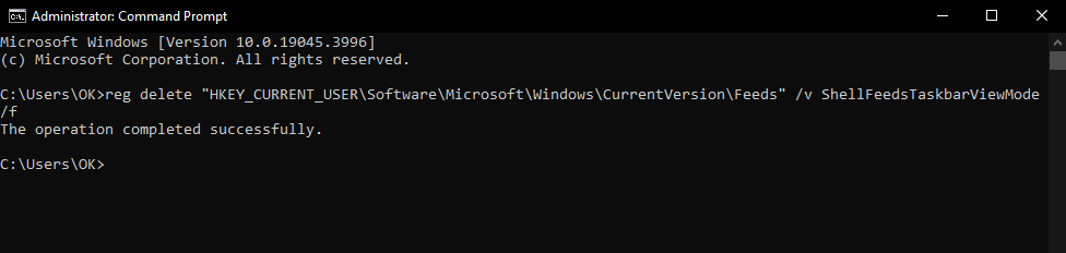 reg delete "HKEY_CURRENT_USER\Software\Microsoft\Windows\CurrentVersion\Feeds" /v ShellFeedsTaskbarViewMode /f