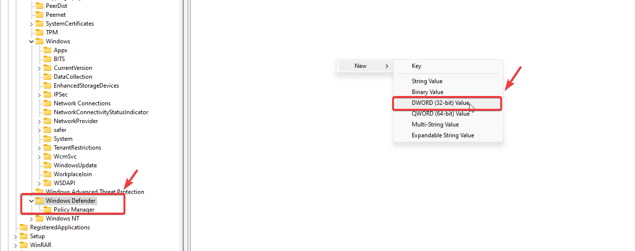 HKEY_LOCAL_MACHINE\SOFTWARE\Policies\Microsoft\Windows Defender