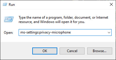 - Press Windows key + R to open up a Run dialog box. Next, type ‘ms-settings:privacy-microphone’ and press Enter to open up the Microphone Privacy window of the Windows Settings app.