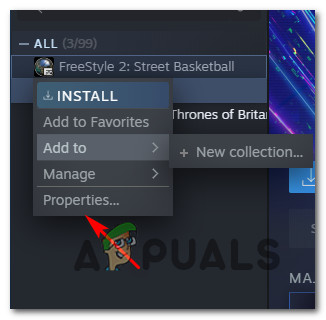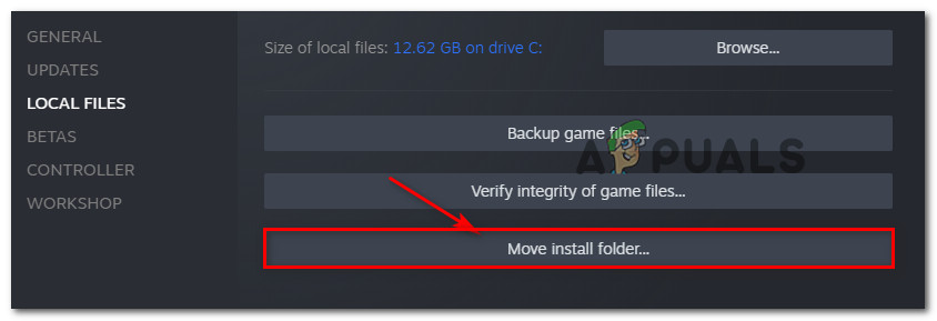 Accessing the Properties menu - Once you’re inside the Properties screen, click on Local Files from the vertical menu on the left, then click on Move Install Folder… from the right pane.