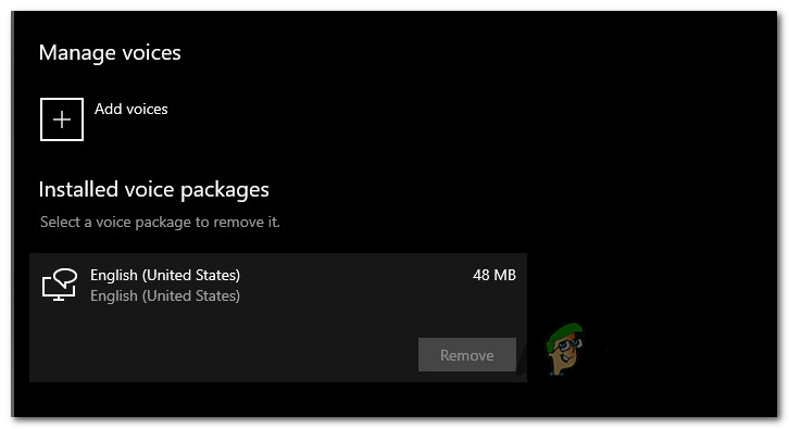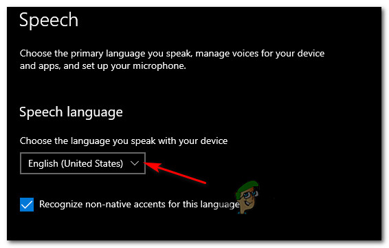 Several affected users have managed to fix this issue by accessing the Speech Settings menu and forcing the installation of the English (United States) voice package – This action will also install the missing voice recognition drivers.