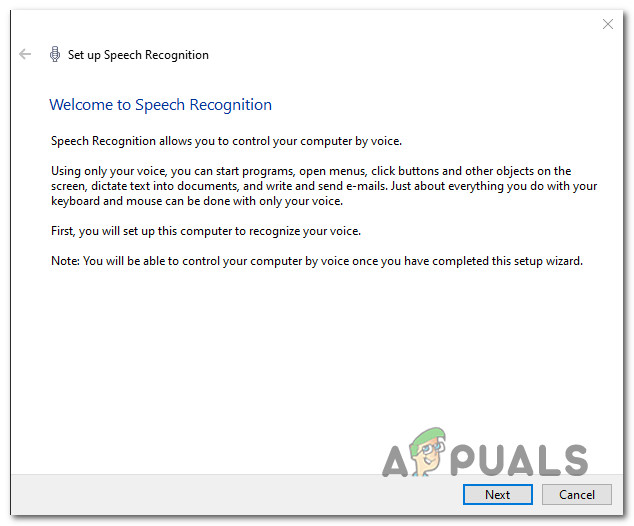 - Next, follow the steps outlined inside the Set up Speech Recognition window that just appeared until the Speech Recognition feature is successfully enabled.