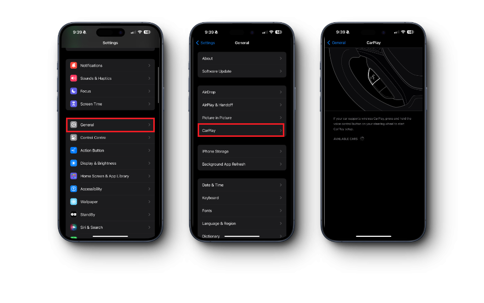 - Select CarPlay and choose your car from the list.