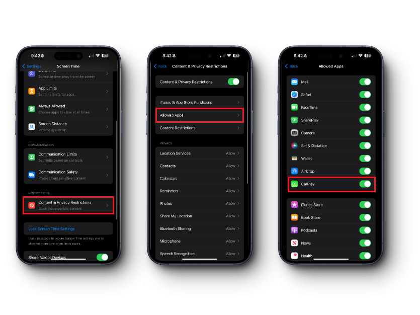4. Check to See if CarPlay Is Not Restricted
