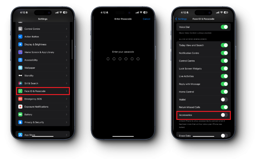 - Under Allow Access When Locked, Toggle off Accessories.