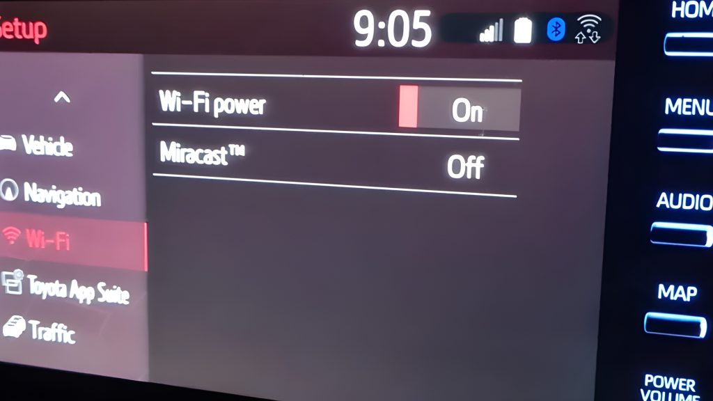 - Open Settings of the car unit and disable Wi-Fi (steps may vary by manufacturer)