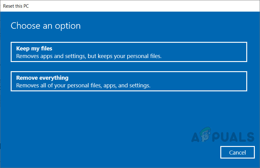 Choosing Reset this PC Options - Click Next one more time after reading the prompt. This procedure may take time so wait until it gets finished.