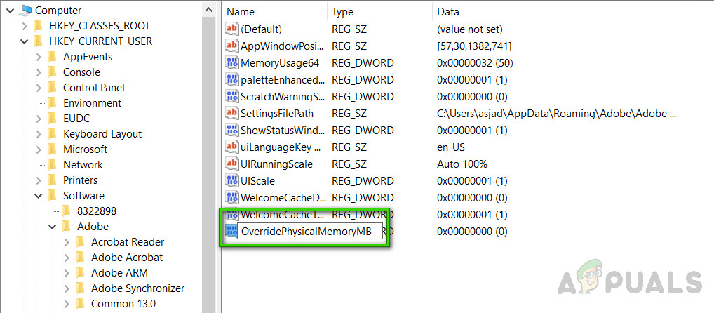 As already discussed, at the standard settings, the Photoshop software tries to load itself minimally and uses the minimum amount of RAM, approximately 1-1.5 GB. Due to this, you are most likely to face the error under consideration if you are working on a 3d model or doing some work that requires heavy graphical processing. To fix things, an ideal approach would be to increase the bandwidth of physical memory to be used by Photoshop. Therefore, we are going to introduce a DWORD key that will allow photoshop to use more physical memory.