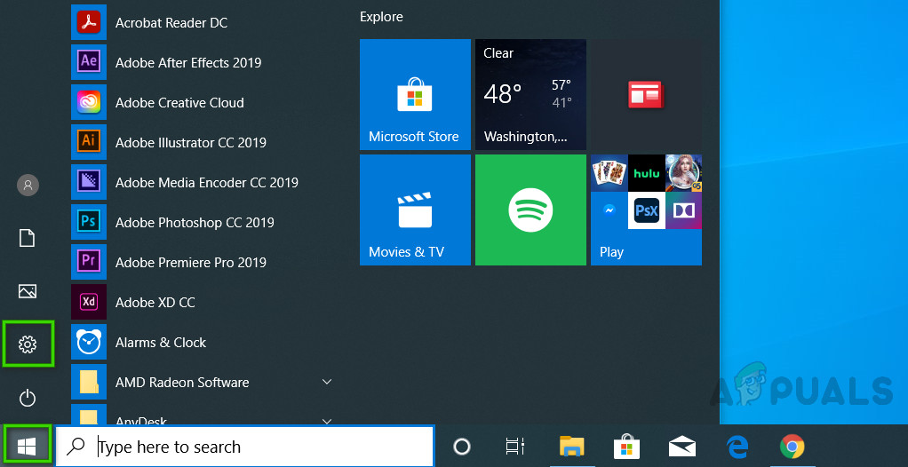 - Click Start and then click Settings. This will open a new window that includes all major settings that you can play with, in Windows 10 i.e. Accounts, Hardware & Software, etc.