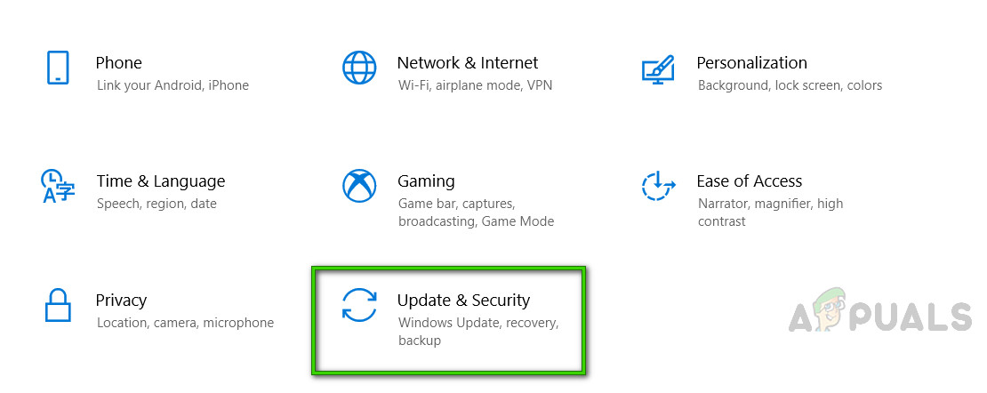 Opening Windows Settings - Click on Update & Security. This will open a window that contains settings relevant to Windows updates and their security i.e. Troubleshooting, Windows Applications Updates, etc.