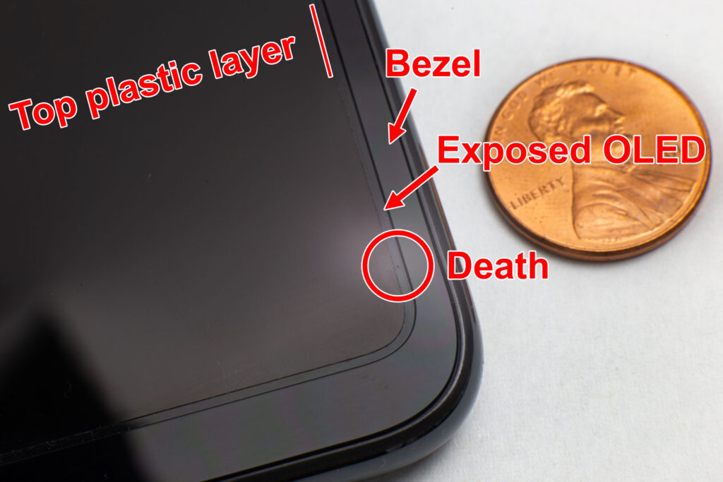 In the case of Pixel Fold, its foldable screen is made up of an ultra-thin glass layer, which is covered in a protective plastic layer. This plastic layer is really important to protect the OLED, but it doesn’t stretch to the edges. This means that there is a small gap around the corners of the display where the plastic layer is not present. This gap is exposed to the elements, and if any debris gets into it, it can puncture the OLED panel.