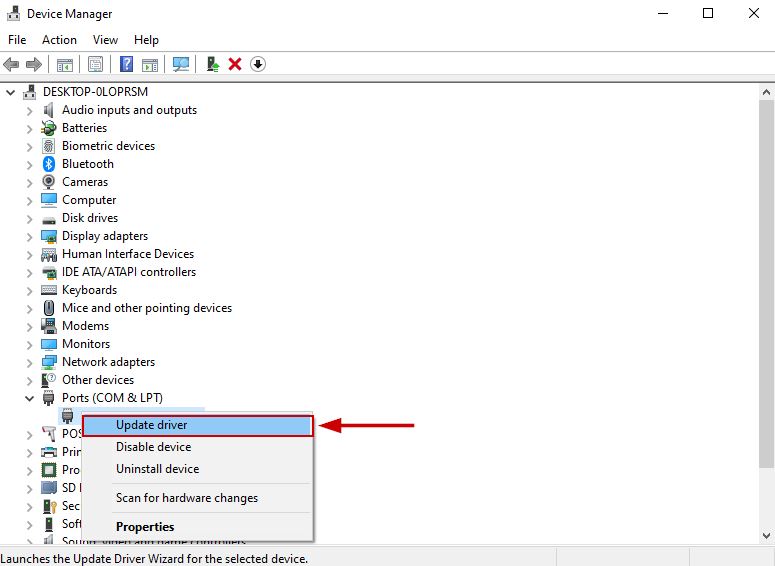 - Open Device Manager again and expand the Ports (COM & LPT) section.