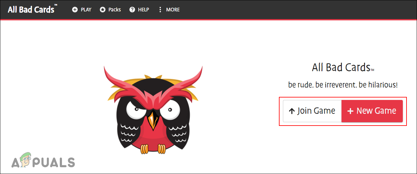 - Open your browser and go to the All Bad Cards site. You will get two options where you can Join a Game or create a New Game.