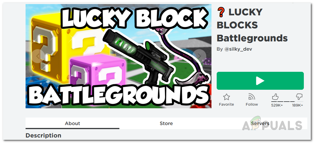 Roblox Home Page - On the game’s page, click on the green Play button provided.