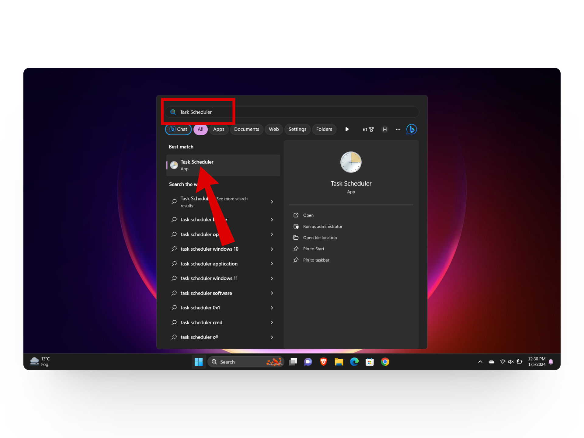 Windows icon - From here, type in “Task Scheduler” in the search bar and select the first result.