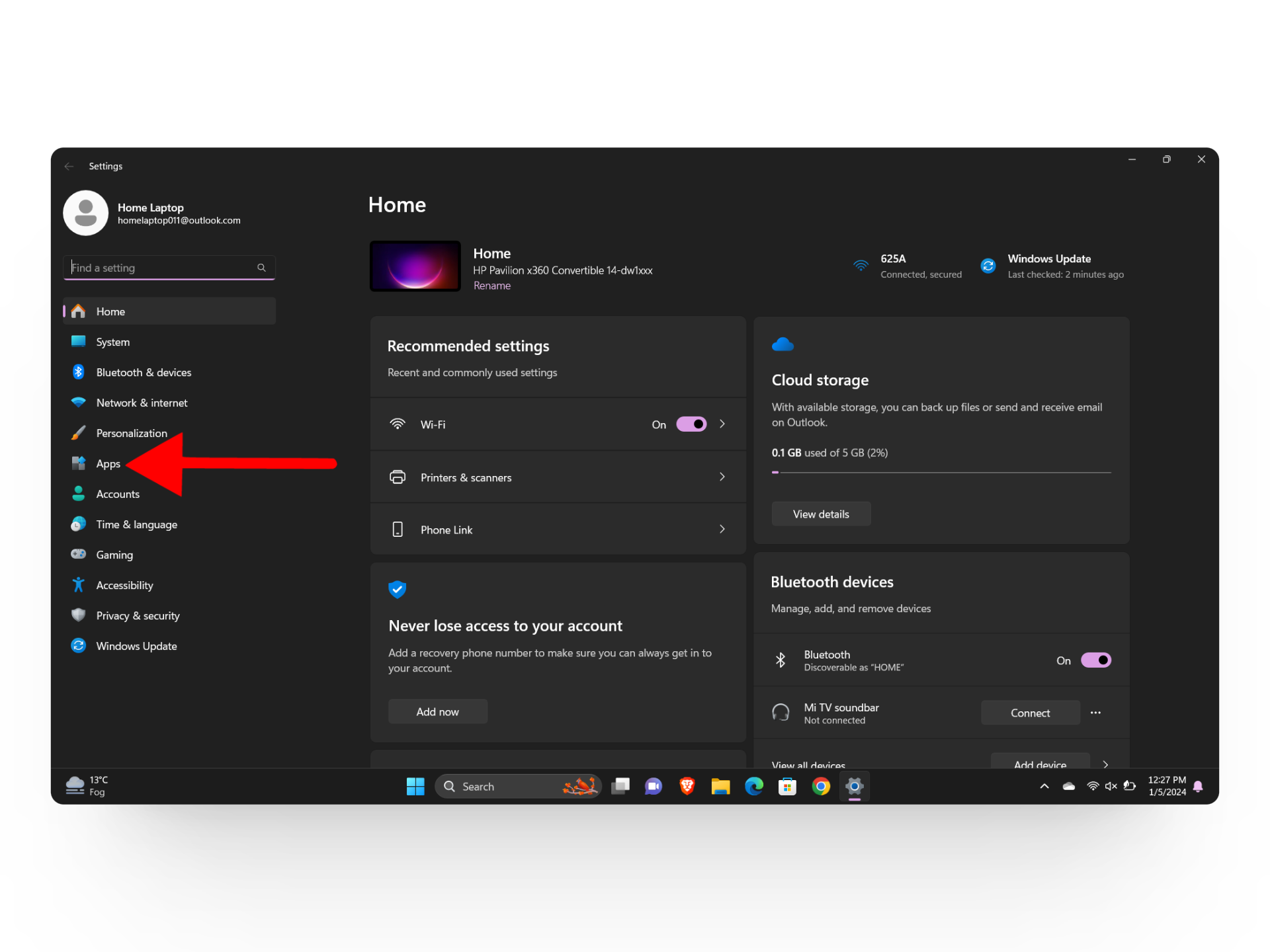 Settings tab - Next, head over to the Apps section from the sidebar.