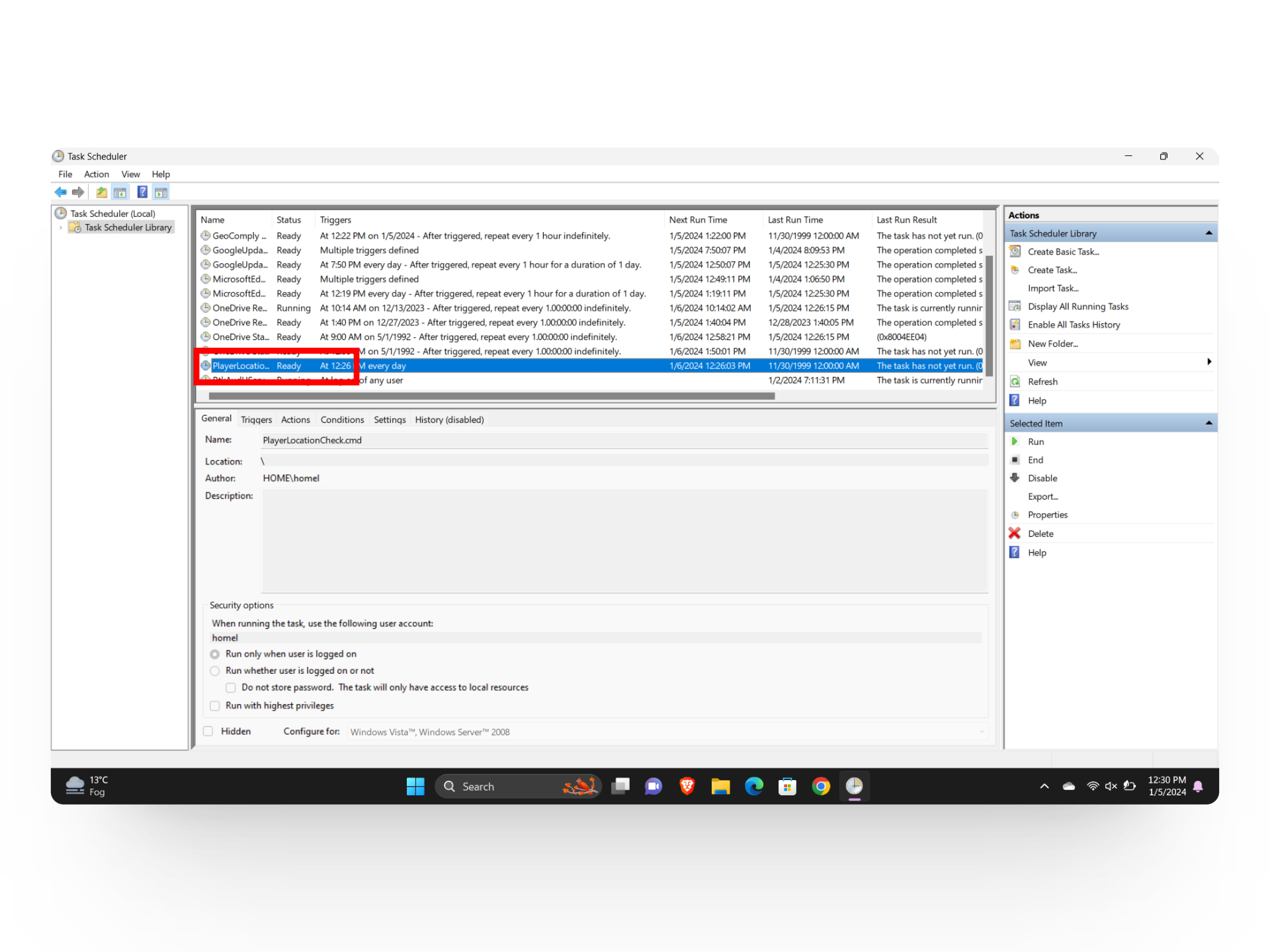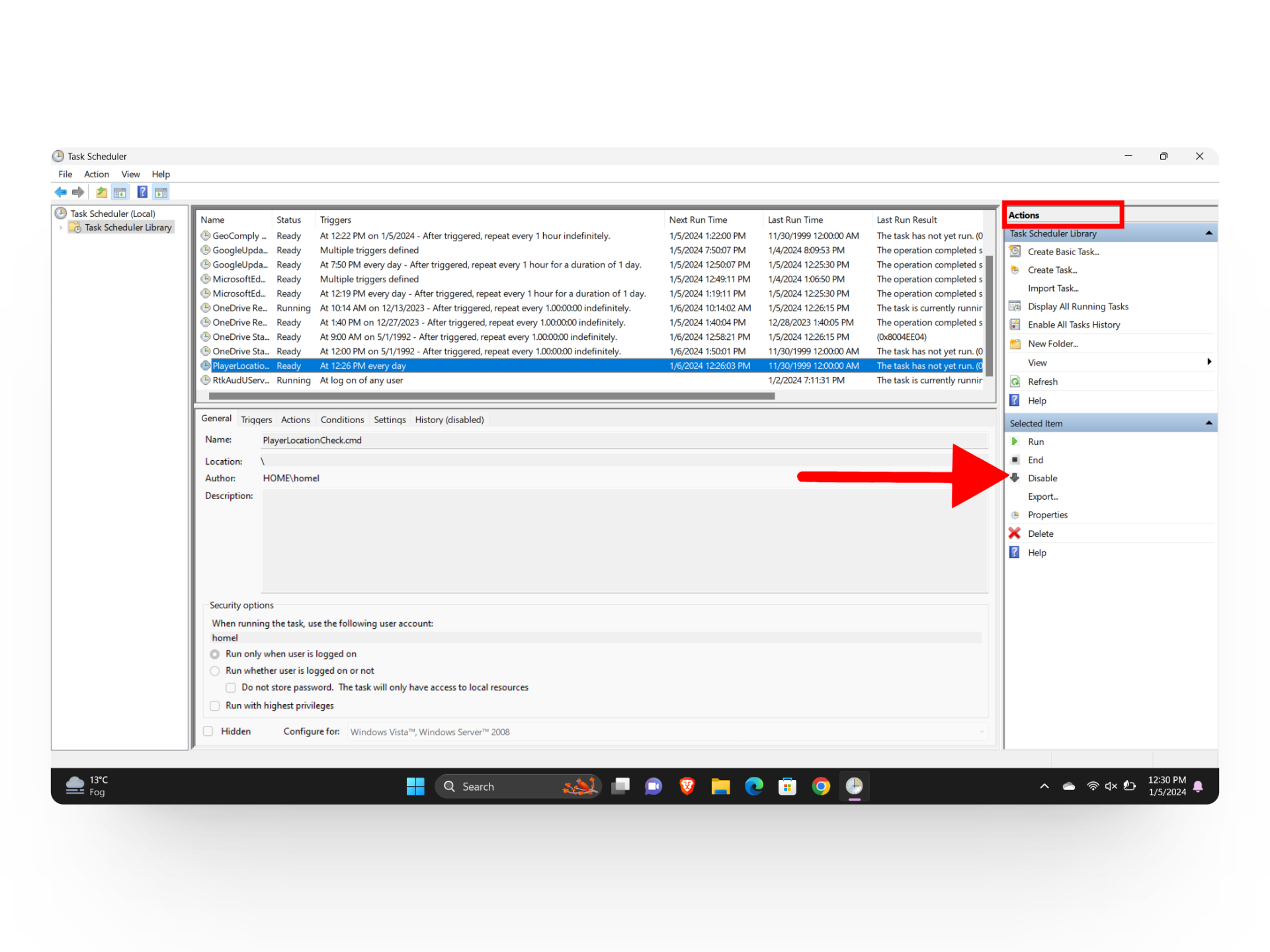 Task Scheduler Library - This will open a list of all your current running tasks. Here, look for PlayerLocationChecker.cmd.