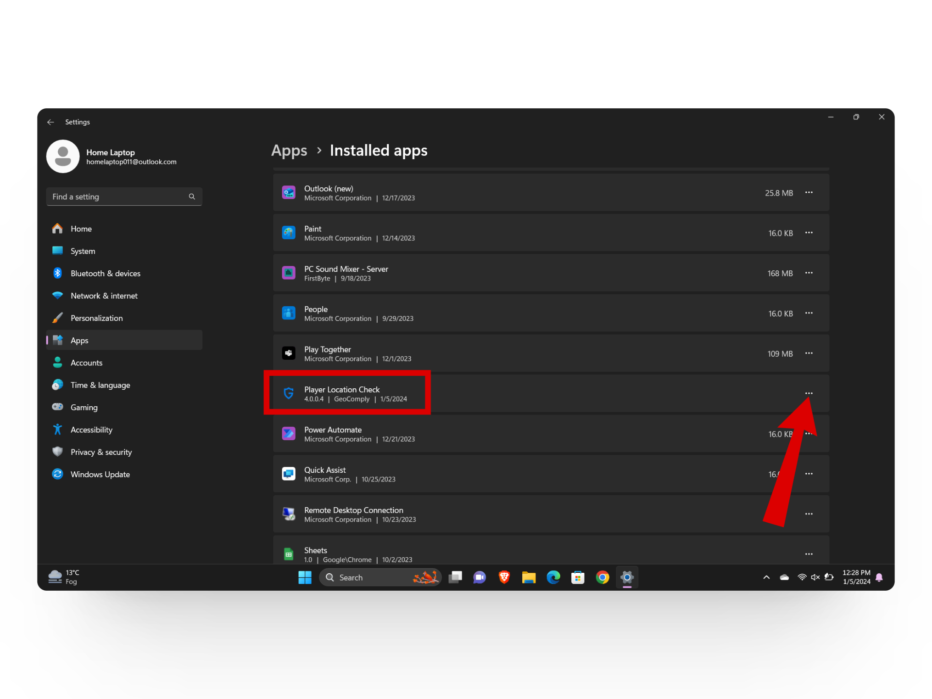 Installed apps - Here, look for the Player Location Check application and click on the three dots next to it.