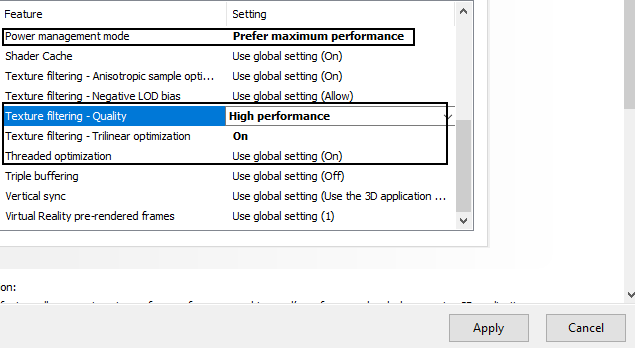 - Change ‘Texture filtering – Quality’ to ‘High performance’.