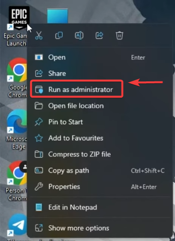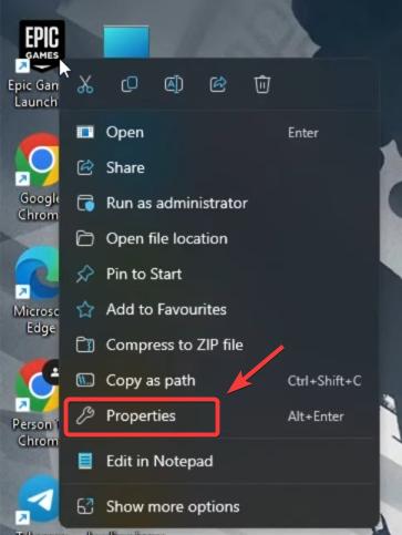 - Now, right-click the Epic Games Launcher shortcut on your desktop and choose Properties.