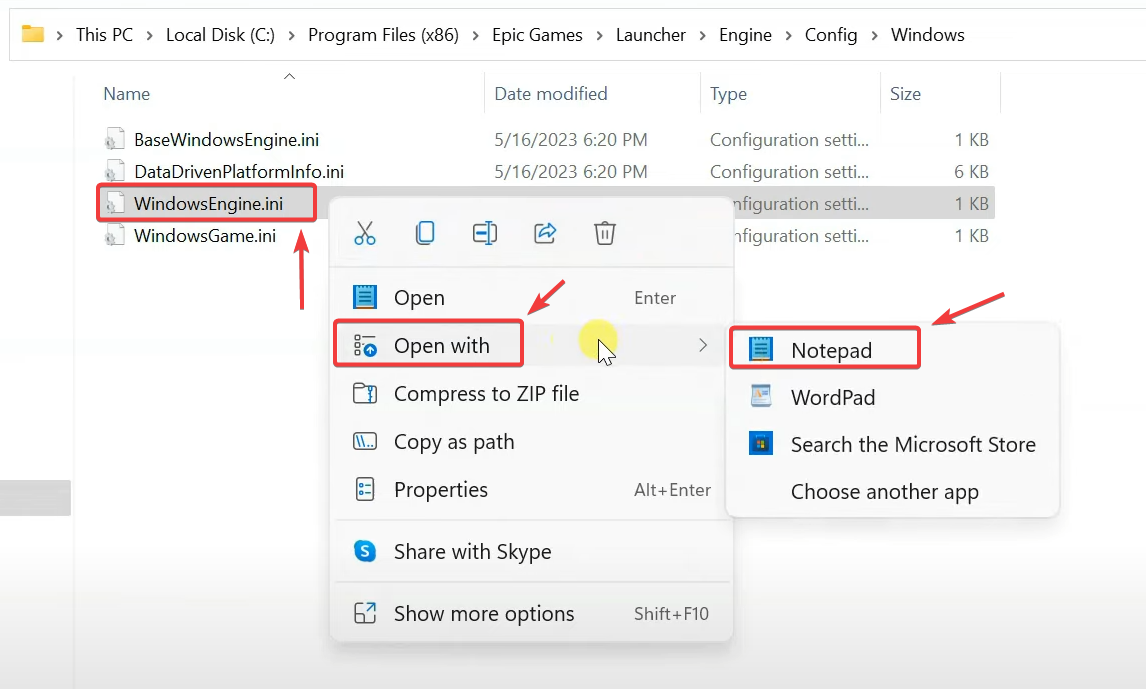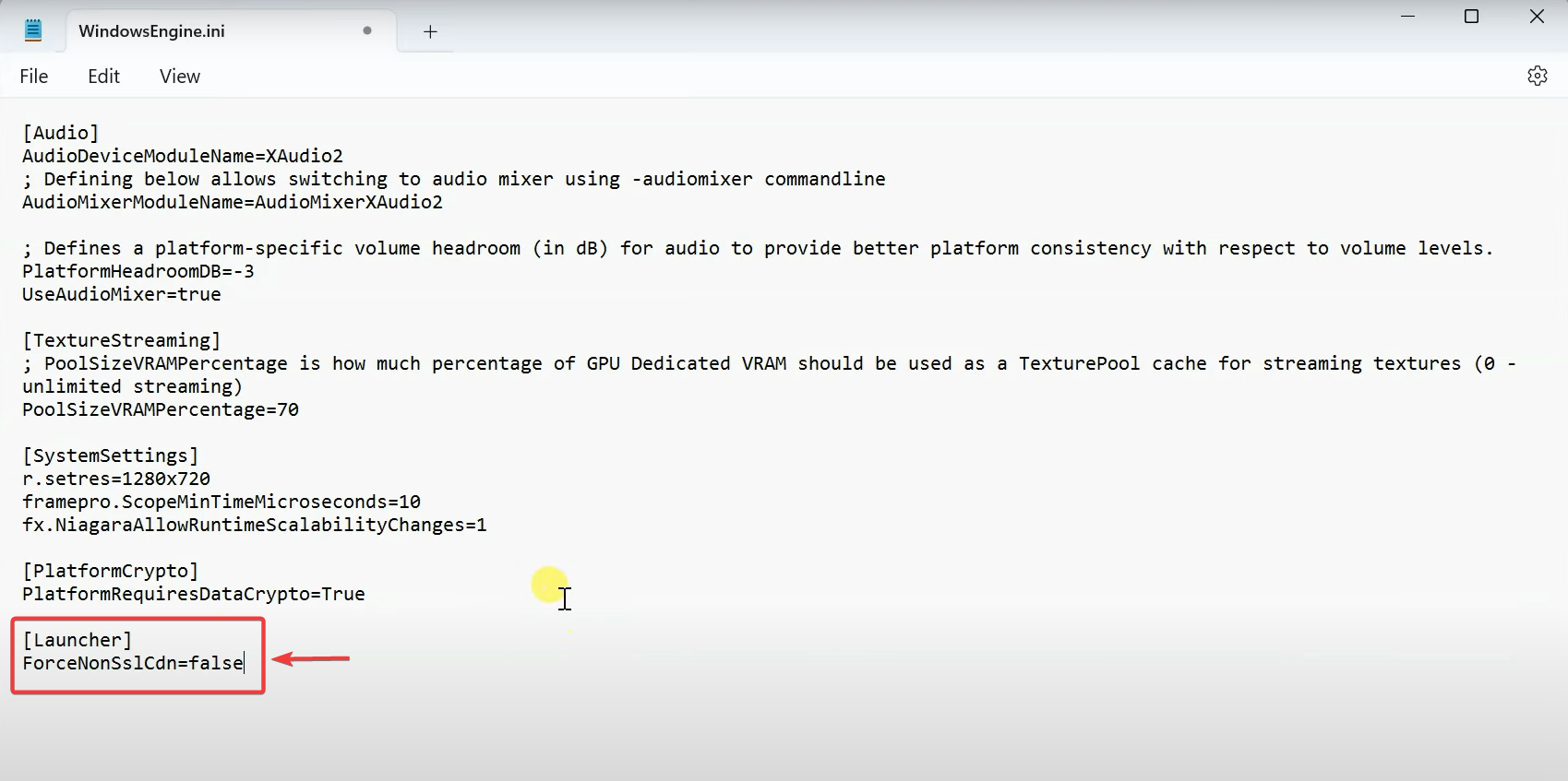3. Edit WindowsEngine.ini (or Engine.ini)