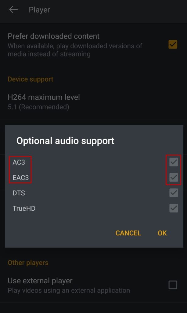 - Checkmark AC3 and EAC3.
