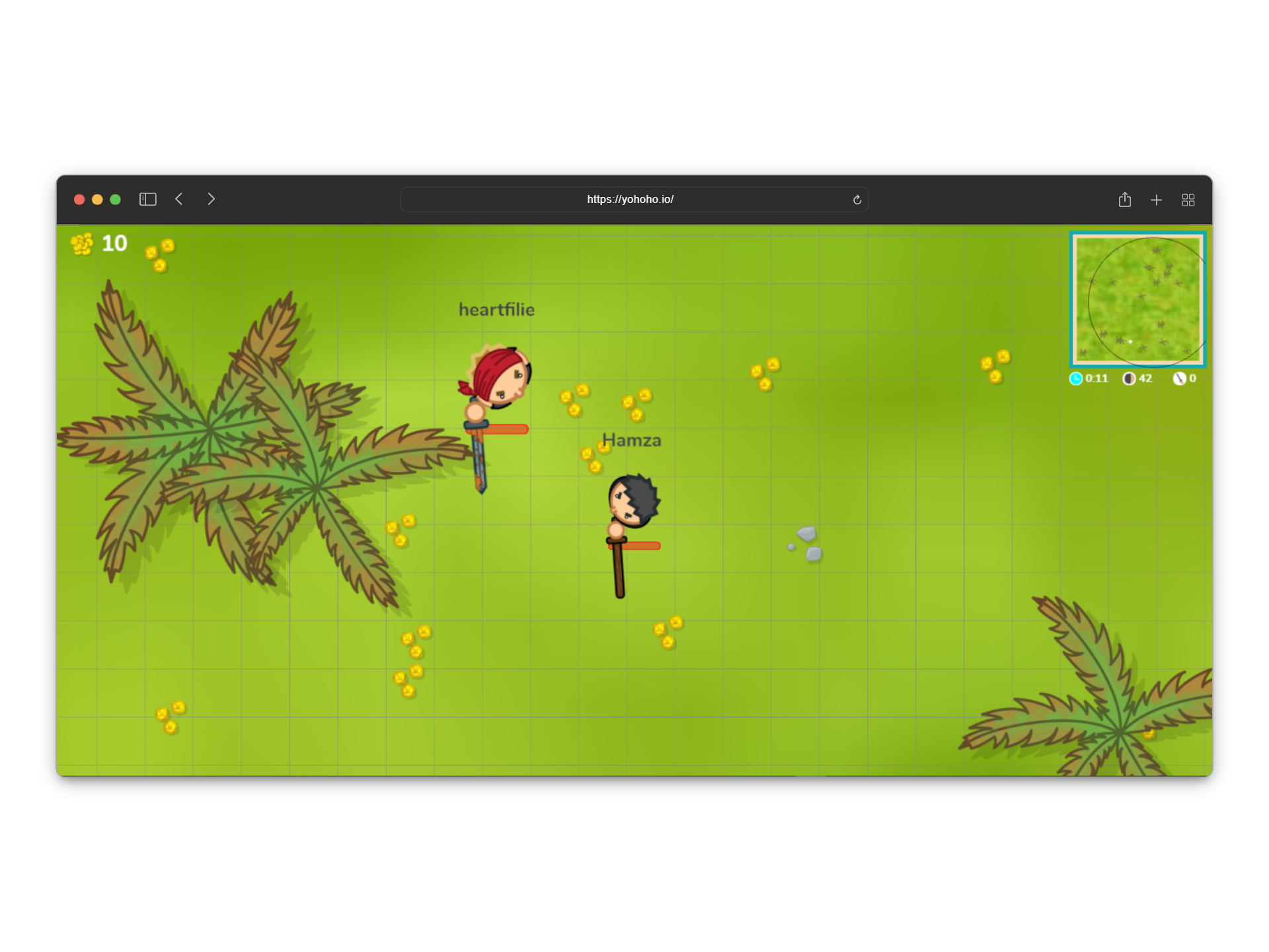 As you’ve probably guessed from the name, YoHoHo.io is a Pirate Battle Royale browser game where the last pirate left standing wins. The goal is to take down other pirates, collect gold and chests, and grow bigger with each takedown. Like other battle royale games, there’s a shrinking storm circle that keeps the action intense.