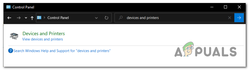 Running the Control Panel - Once you’re inside the classic Control Panel interface, use the search function in the top-right corner to search for Devices & Printers. Once the results show up, click on Device & Printers.