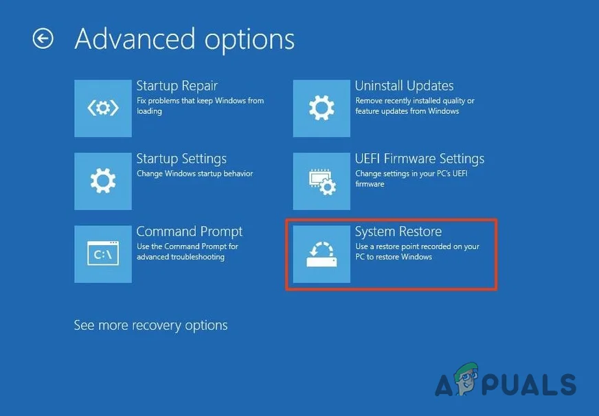 - Select “System Restore” and choose your restore point.