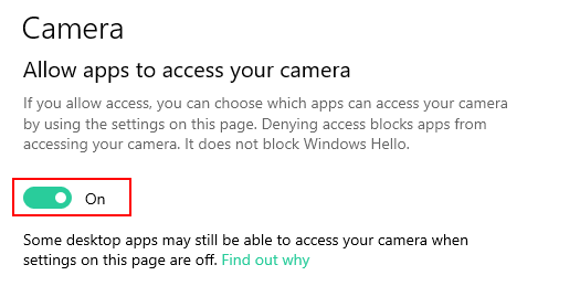Changing the Camera Access settings - This will disable the access of camera for applications on your system.