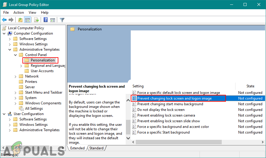 Method 1: Preventing Customization of Lock Screen through Local Group Policy