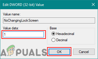 Creating new value - Now double-click on the NoChangingLockScreen value and set the Value data to 1. Click on the Ok button to apply the changes.
