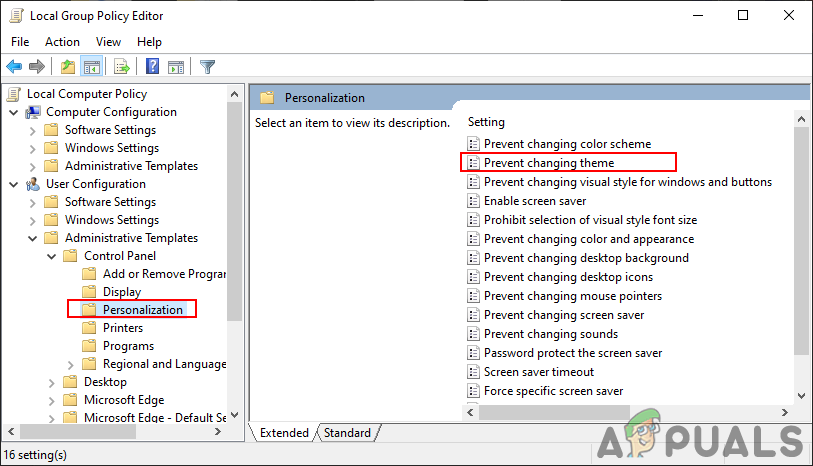 The Local Group Policy Editor contains all kinds of policies that can enable and disable specific settings on the operating system. It can be used to customize settings for a computer or a specific user on the computer. There is a specific policy setting for preventing users from changing the theme of their operating system. It is listed under the User Configuration category of the Group Policy Editor.