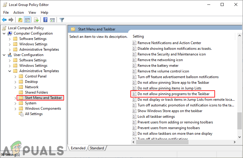 Disabling Pinning Programs by Using the Local Group Policy Editor