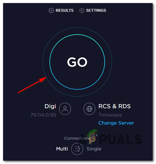 Note: Peer-to-Peer torrent tools are prime candidates for this. - Next, visit the official page of Speedtest from your browser of choice and click on Go to initiate a Speed test.