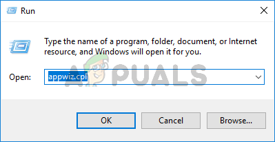 - Open up a Run dialog box by pressing Windows key + R. Next, type ‘appwiz.cpl’ and press Enter to open up the Programs and Features screen. When you are prompted by the UAC (User Account Control), click Yes to grant administrative privileges.