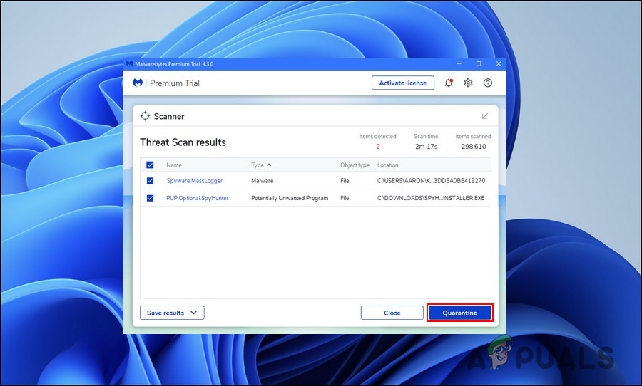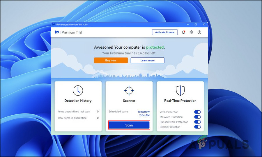 We have divided this method into two parts. In the first part, we will use Malwarebytes to scan the system. In the latter, we will use Windows Defender to look for the potential problem.