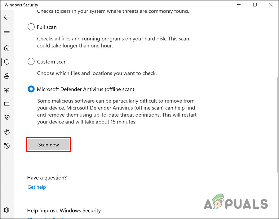 Microsoft Defender offline scan - Hit the Scan now button and wait for the process to complete.