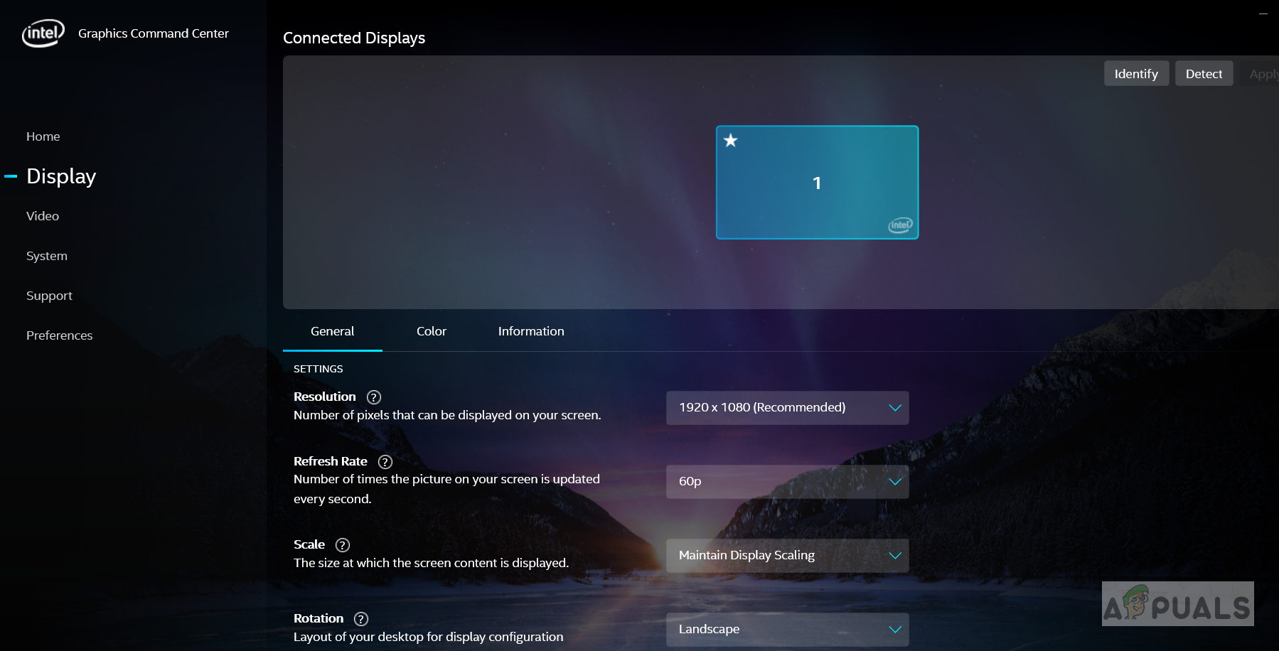 Intel Graphics Command Center - Double click the Intel® Graphics Command Center and go to Display Section