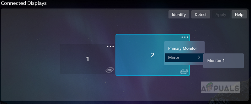 - Click Mirror and select which display you would like to duplicate from