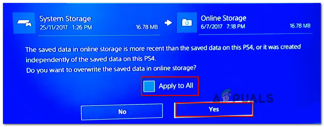 Uploading save games Note: Keep in mind that in case you have more recent saves on the online storage, you will need to confirm the process one more time. If you have a lot of different conflicts of this kind, it’s a good idea to use the Apply to All box before choosing Yes, so you don’t get this prompt over and over again.