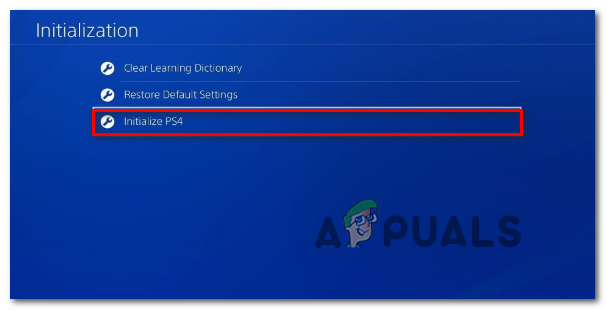 If none of the potential fixes above have worked for you, one last attempt at resolving the CE-32809-2 error code is to perform initialization on your PS4 console. This fix was confirmed to work by several affected users that were previously facing this problem.