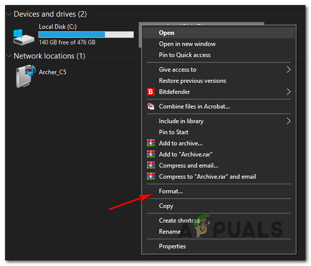 - Next, right-click on the USB drive that you want to use and choose Format… from the context menu.