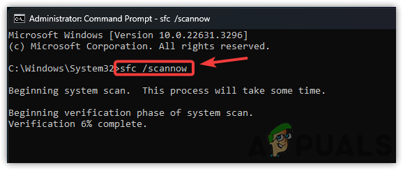 - Once it is opened, type sfc /scannow and wait for the command to be executed.