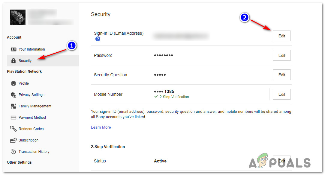 - From a PC, go to the Sony’s Account Management page in a web browser and sign in. Note: Enter your verification code if two-step verification is enabled.
