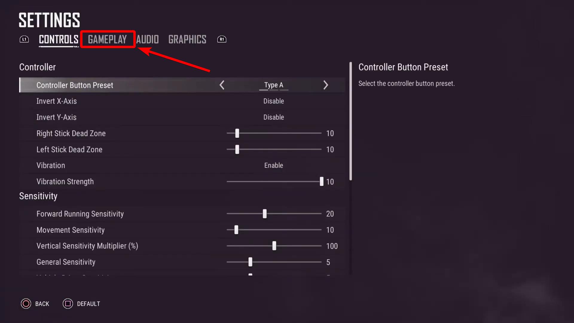 Open Settings - Navigate to Gameplay Settings: Scroll across to the ‘Gameplay’ tab.