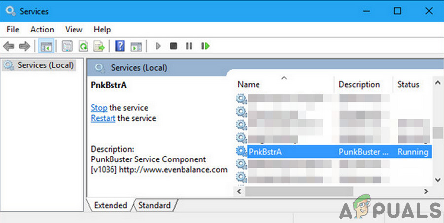 PunkBuster engine will have a process PnkBstrA.exe in the Task Manager and PnkBstrA service in the Services, both of these will run in the background.